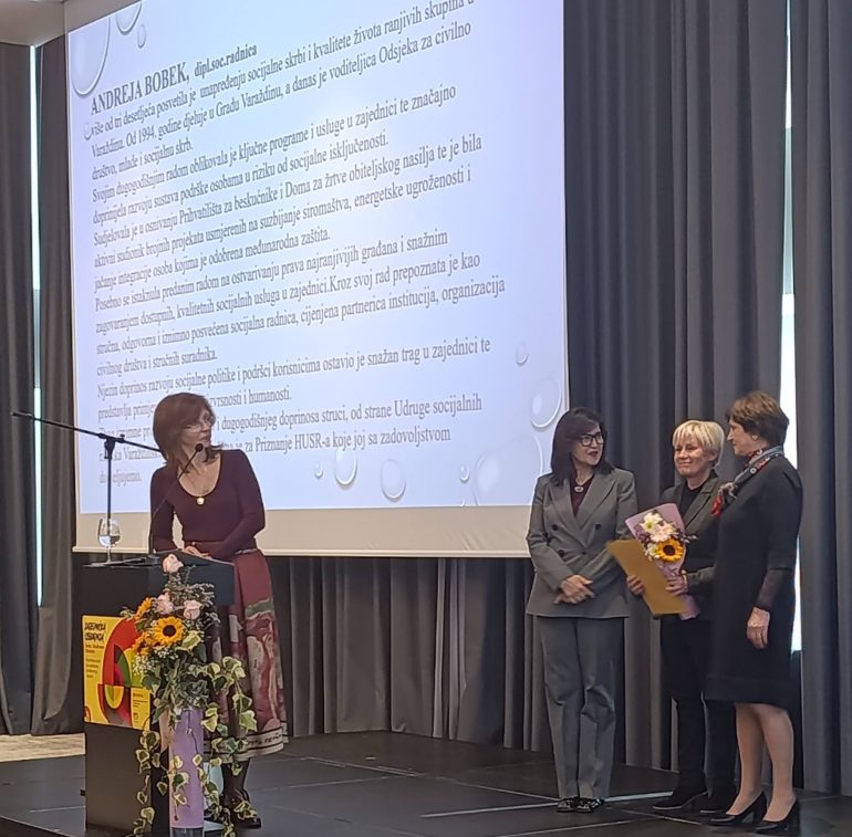 Priznanje za zapažene uspjehe u radu, zalaganje za opće dobro i solidarnost u zajednici primila je djelatnica iz UO za društvene djelatnosti Grada Varaždina Andreja Bobek, diplomirana socijalna radnica.