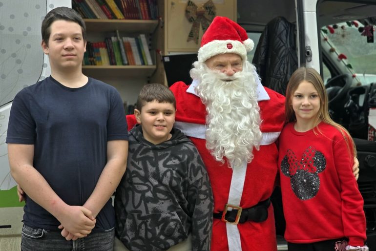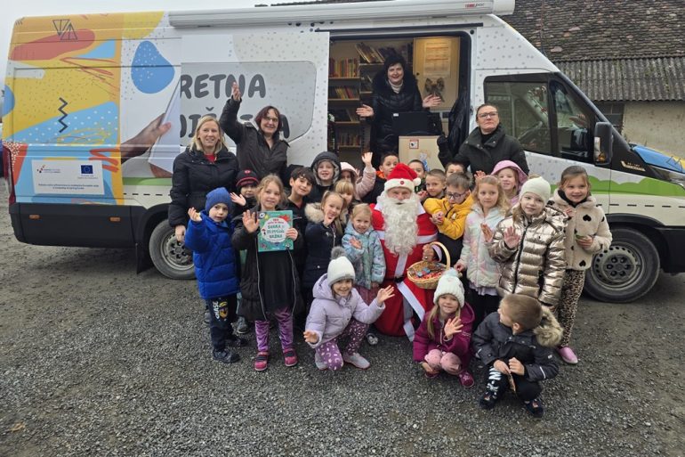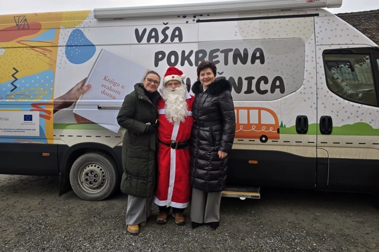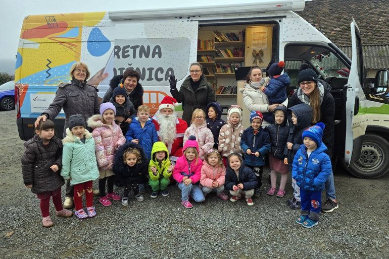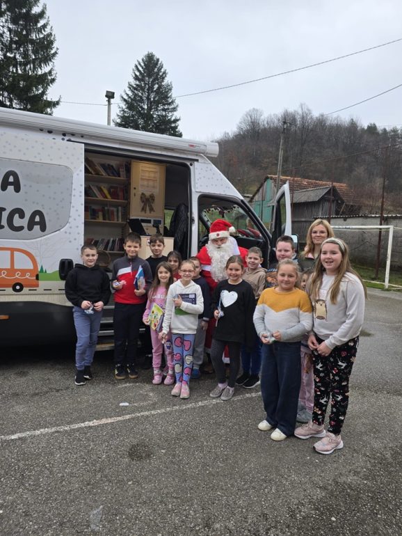 Iako ove godine nije bilo snijega ni saonica, Djed Mraz je bez poteškoća pronašao način da dođe do djece i to upravo zahvaljujući bibliobusu koji se pokazao kao savršeno prijevozno sredstvo.
