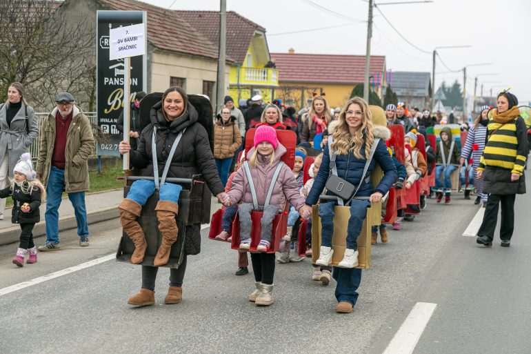 Središnji događaj fašničkog vikenda bila je velika karnevalska povorka, održana u subotu, u kojoj je sudjelovalo ukupno 56 karnevalskih skupina s oko 1.600 maskiranih sudionika iz Hrvatske i inozemstva. Šarolika i razigrana povorka prošla je središtem Sračinca, privukavši brojne posjetitelje i stvarajući prepoznatljivu fašničku atmosferu ispunjenu glazbom, humorom, satiričnim porukama i bogatom kreativnošću sudionika.