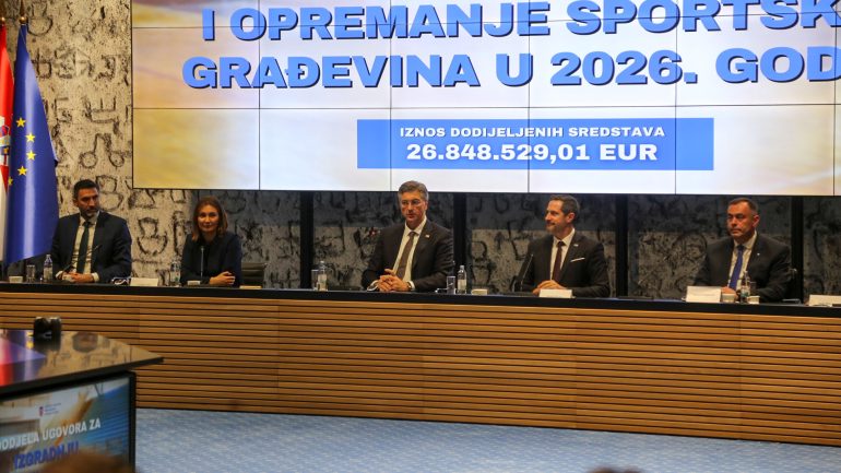 Dodijeli ugovora Ministarstva turizma i sporta o sufinanciranju izgradnje i rekonstrukcije sportskih građevina za 2026. godinu ukupne vrijednosti 26.848.529,01 eura nazočio je i predsjednik Vlade Republike Hrvatske Andrej Plenković.