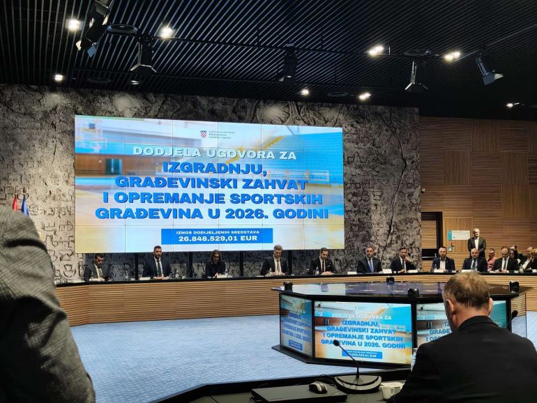 Ministarstvo turizma i sporta danas je dodijelilo ugovore o sufinanciranju izgradnje i rekonstrukcije sportskih građevina za 2026. godinu, ukupne vrijednosti 26.848.529,01 eura. Od ukupno 148 dodijeljenih ugovora, njih devet, u vrijednosti od 1.247.245,13 eura, odnosi se na projekte sportske infrastrukture na području Varaždinske županije.
