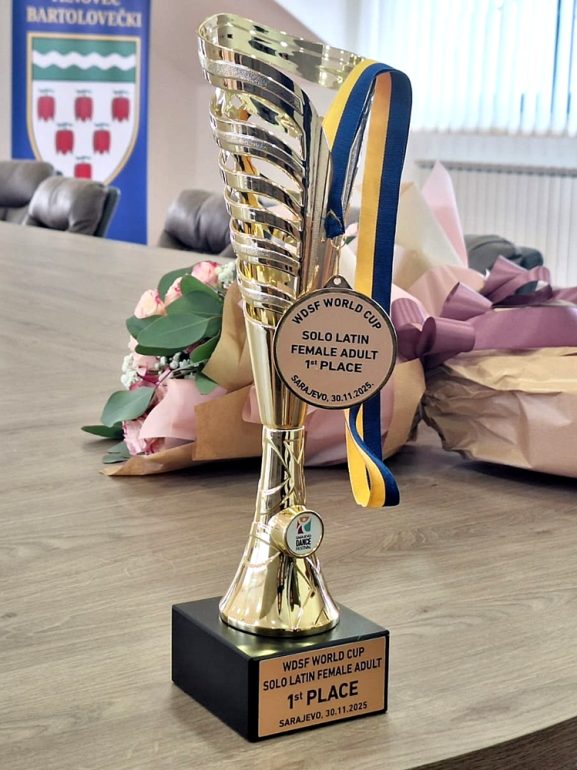 Načelnica Općine Trnovec Bartolovečki Verica Vitković u ponedjeljak je upriličila svečani prijem za Stefani Hrman, mladu sportašicu iz Trnovca koja je ostvarila izniman međunarodni uspjeh. Na posljednjem Svjetskom kupu u latino-američkim plesovima u pojedinačnoj kategoriji, održanom u Sarajevu, Stefani je osvojila prvo mjesto u kategoriji odraslih, u konkurenciji 83 natjecateljice iz više od 20 zemalja. Načelnica Vitković tom joj je prilikom čestitala na izvanrednom rezultatu i uručila prigodni poklon, naglasivši kako se Općina s ponosom može pohvaliti velikim brojem uspješnih mladih sportaša. “Trnovec je nekako sjedište mladih uspješnih sportaša i to u svim sportovima. U ovo predblagdansko vrijeme s posebnim zadovoljstvom primamo naše mlade talente. Stefani nas je posebno oduševila odličjem na Svjetskom kupu. Za jednu ovako malu općinu to je prekrasan uspjeh. Ona je poticaj ne samo svojoj obitelji nego i svim mladima na području naše općine” istaknula je načelnica. Vitković je pritom podsjetila da uspjesi mladih sportaša nisu rijetkost u općini. Nedavno je i mještanka Maja Racanović osvojila treće mjesto na Svjetskom prvenstvu u standardnim plesovima, a čestitku joj je poslala i načelnica Vitković. Na posebnom je prijmu nedavno uručena i simbolična potpora individualnim sportašima – boksačima Patriku Grđanu, Loreni Horvat i Lani Skupnjak, te ritmičarki Evi Kocijan. Mi svake godine izdvajamo značajna sredstva za kolektivne i individualne sportove. Individualni sportovi iziskuju znatna financijska ulaganja obitelji, stoga im Općina pomaže u skladu s mogućnostima. U proračunu za 2026. godinu predvidjeli smo 90 tisuća eura za ulaganje u sport, dodala je načelnica. Stefani je tijekom prijema podijelila svoje dojmove s natjecanja, istaknuvši kako je prvo mjesto rezultat dugogodišnjeg rada, ali i velika emocionalna pobjeda. “Prije Svjetskog kupa osvojila sam osmo mjesto na Europskom prvenstvu i to mi je bio izvrstan rezultat, ali prvom mjestu se zaista nisam nadala. Posebno mi znači jer mi je dan ranije preminuo djed, pa je bilo izuzetno teško ostati fokusirana i nastupiti s osmijehom, kako ples zahtijeva” rekla je Stefani. Dodala je da trenira svakodnevno, ponekad i dvaput dnevno, te da se plesom bavi već 12 godina. Članica je Plesnog kluba Zagreb, a sljedeći cilj joj je Europsko prvenstvo iduće godine.