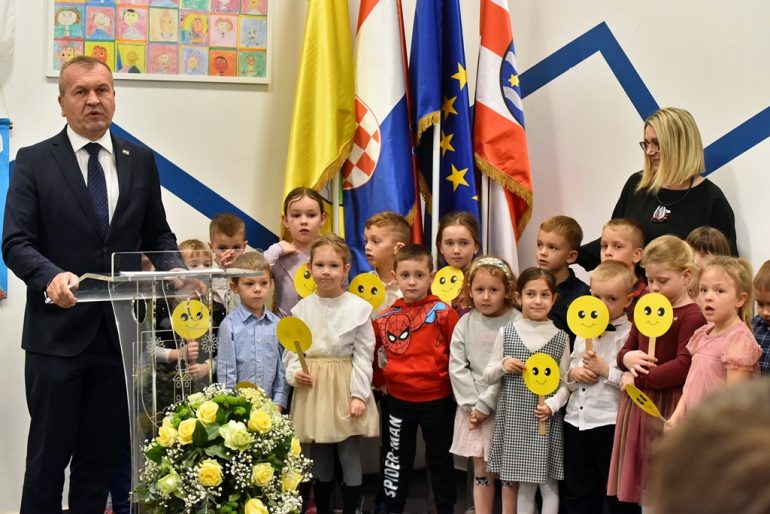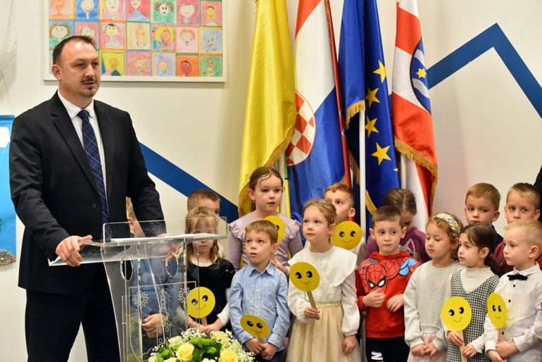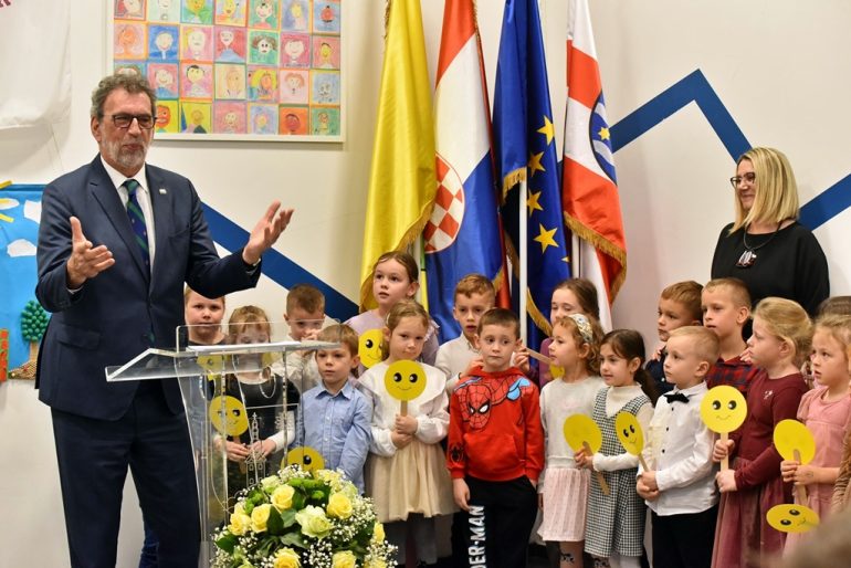 Prenoseći pozdrave premijera Plenkovića, ministar znanosti, obrazovanja i mladih Radovan Fuchs naglasio je da je presretan zbog realizacije projekta koji je osmislila Vlada RH, a čiji je apsolutni prioritet ulaganje u obrazovanje, s vizijom ravnomjernog razvoja u Hrvatskoj. „Projekt sada počinje dobivati potpuno jasne vizure i konture u smislu da krećemo u što polaganje kamena temeljaca, što u otvaranje novih objekata. Vlada je prepoznala obrazovanje kao jedan od apsolutnih prioriteta u Republici Hrvatskoj i ulaganje u obrazovanje ne može biti promašena investicija, već je to sigurno ulaganje gdje se ne može pogriješiti, bilo da to radite kao država, kao nekakva kompanija, korporacija ili individualno. Ova su djeca budući znanstvenici profesori, poduzetnici, političari, prema tome, obrazovanje kreće iz dječjeg vrtića. Osmislili smo cijelu reformu na način da ćemo imati obaveznu predškolu, nešto ozbiljnije nego do sada, ali da bismo to mogli, svako dijete mora imati mjesto u dječjem vrtiću” – rekao je ministar Fuchs.