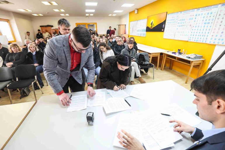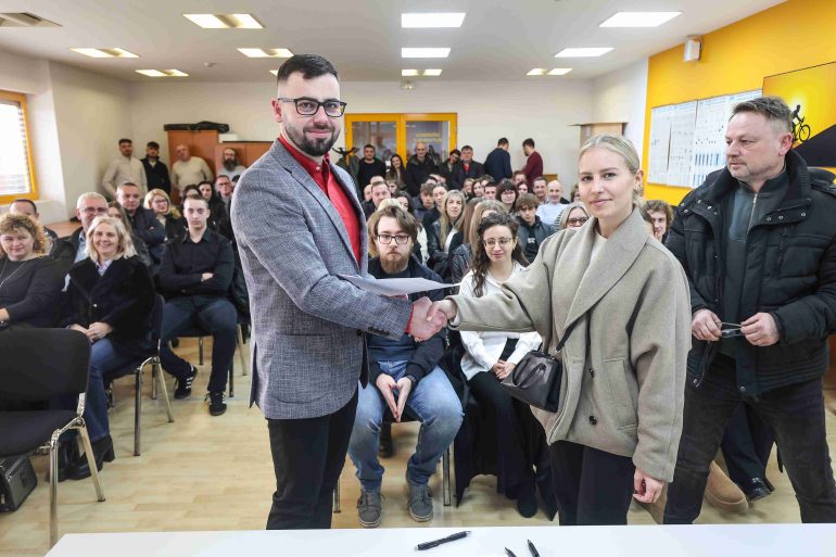S novim stipendistima Općine Nedelišće svečano su potpisani ugovori o stipendiranju za ovu akademsku godinu. Ugovore je potpisao općinski načelnik Nikola Novak uz predsjednika Odbora za društvene djelatnosti i stipendiranje studenata Davida Horvata.