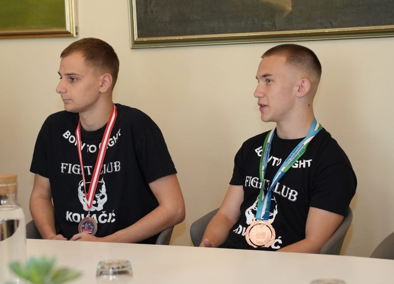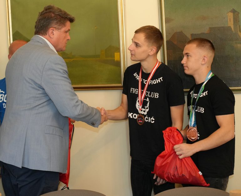 Zamjenik gradonačelnika Grada Varaždina i saborski zastupnik Miroslav Marković primio je u ponedjeljak u salonu Gradske vijećnice uspješne sportaše Bornu Tuka i Tristana Talana te trenere Marjanu i Sinišu Kovačića iz Savate kluba Fight Club Kovačić.