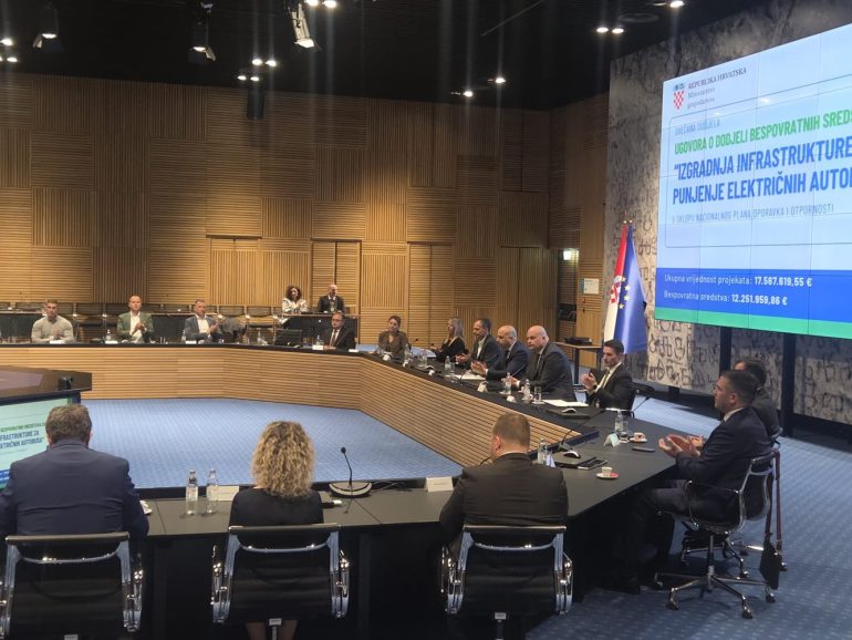 U četvrtak je u Nacionalnoj i sveučilišnoj knjižnici u Zagrebu održana svečana dodjela ugovora o dodjeli bespovratnih sredstava u sklopu Nacionalnog plana oporavka i otpornosti (NPOO), u okviru Poziva „Izgradnja infrastrukture za punjenje električnih autobusa“.
