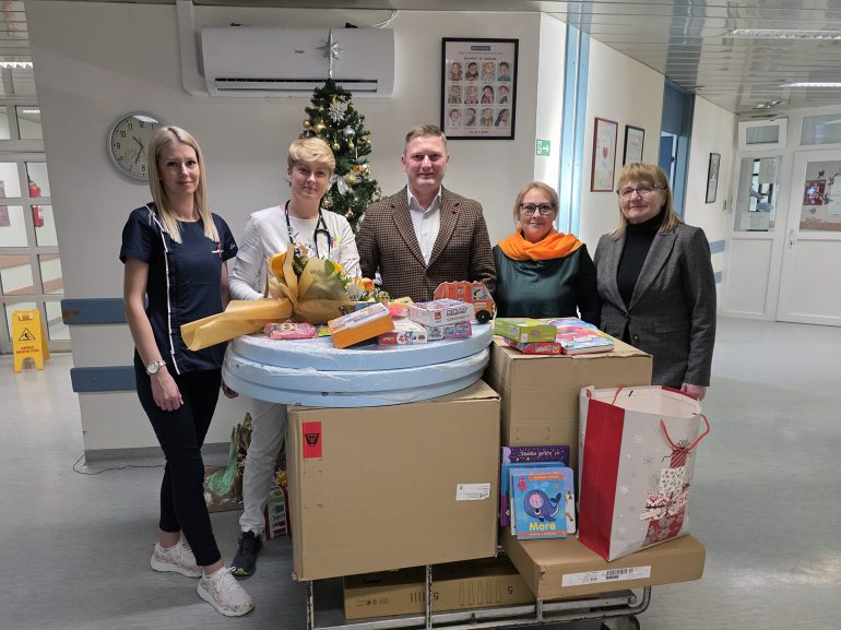 Ženska inicijativa HNS-a Podružnice Varaždin nastavila je svoju tradicionalnu akciju darivanja Odjela pedijatrije Opće bolnice Varaždin, pa su tako na zadnji dan prošle godine članice Ženske inicijative HNS posjetile Odjel pedijatrije. Donacija je realizirana u dogovoru s voditeljicom Odjela pedijatrije Brankom Maretić, dr. med., spec. pedijatar, i v.d. glavne sestre odjela Manuelom Slunjski, bacc. med. techn., kako bi se osiguralo da pomoć bude usmjerena prema stvarnim potrebama najmlađih pacijenata. Ove godine Odjel pedijatrije opremljen je novim stolovima i stolicama za djecu te ormarićem za odlaganje i organizaciju igračaka, čime će se unaprijediti svakodnevni boravak djece na odjelu i omogućiti im prostor za igru i kreativne aktivnosti tijekom liječenja. Uz namještaj, djeci su darovane i slikovnice, igračke te slatkiši.